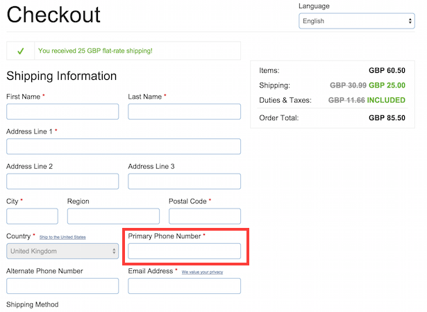Here, Chef’s Catalog asks for a phone number as a mandatory field.