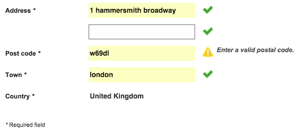 However, because I haven’t entered my postcode with a space in the middle, I’ve triggered this error message.