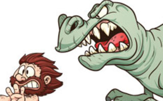 Dinosaur Chasing a Caveman image on home page via Shutterstock.