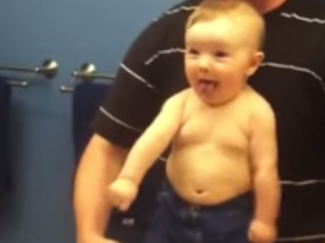 Try and stop your ovaries from bursting (men, you can imagine) when watching the ADORABLE 8-month-old baby Hadley flex with her father.