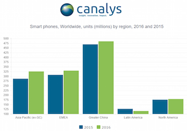 Smartphone sales in China are approaching half billion units annually, which is about one third of the global market, (Source Canalys, August, 2016).