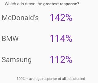 The McDonald’s ad achieved the greatest response, with 42% more searches then the average, followed by BMW and Samsung.