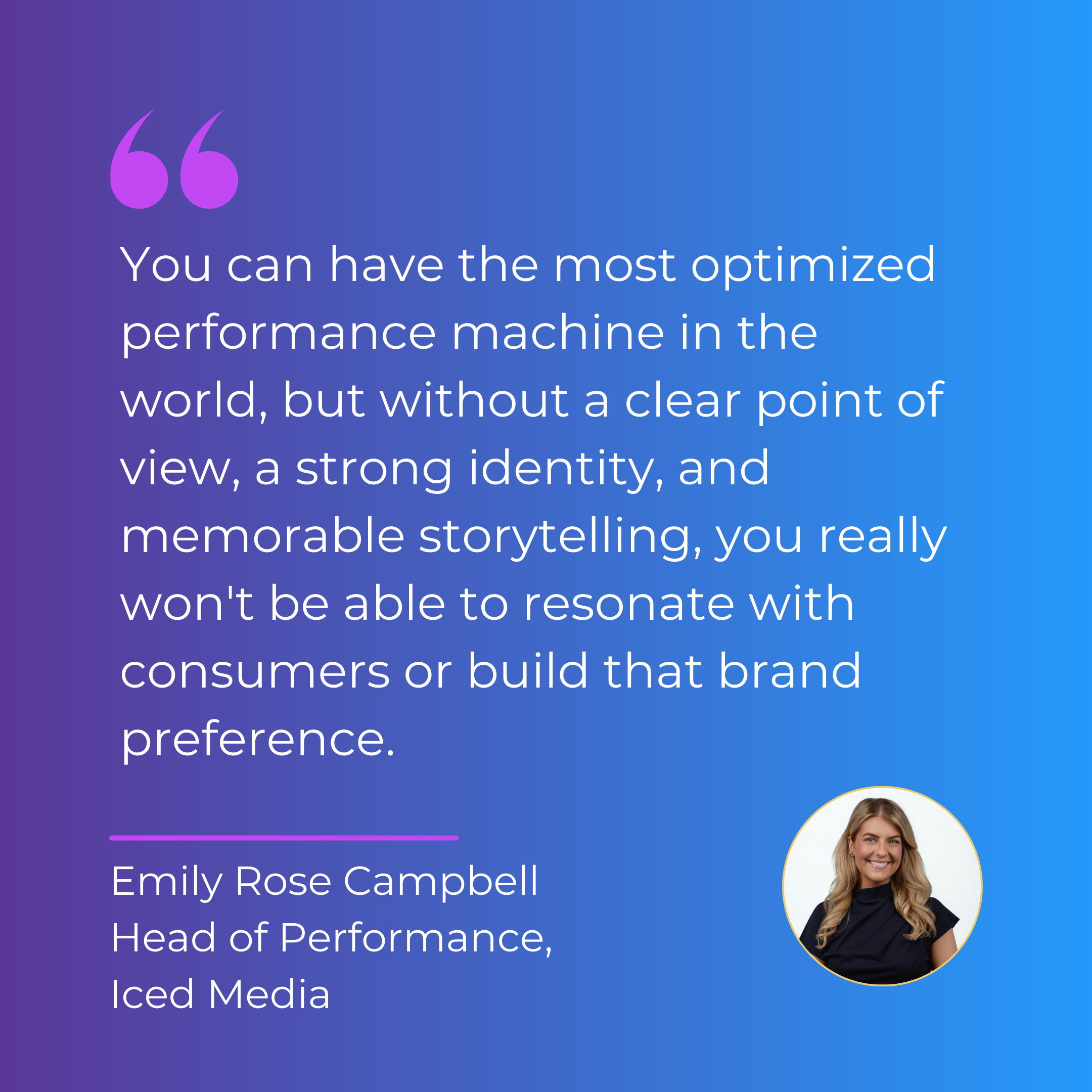 Emily Rose Campbell: I love this question and to me it’s brand building, 100%. You can have the most optimized performance machine in the world, but without a clear point of view, a strong identity, and memorable storytelling, you really won’t be able to resonate with consumers or build that brand preference. We know that consumers buy on emotion. Roughly 95% of purchase decisions are driven by emotion. Over 70% of Gen Z buys products purely due to aesthetic or vibe. And we know brands that are culturally relevant grow six times faster than the average brand.