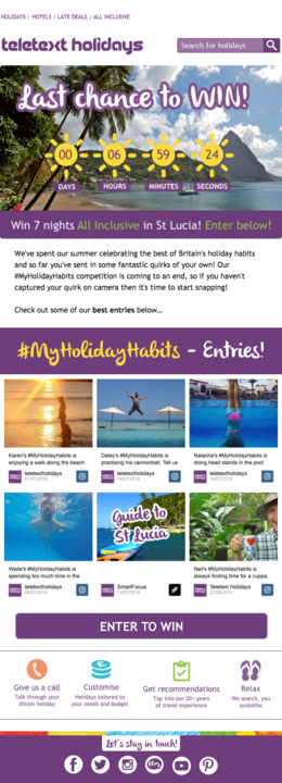 Using real-time UGC in their summer email and social campaign #myholidayhabits (powered by Smart Content), they saw outstanding results.