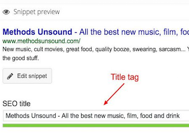 If you use an SEO plug-in, such as Yoast, you can add a title tag to the ‘SEO title’ section, and preview an example of how it will look in the SERPs: