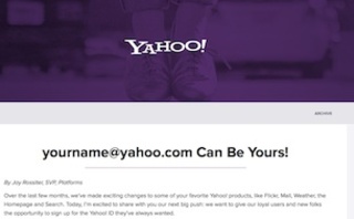 This was wrapped up in a blog post from Yahoo that talked to some of the other changes they had made and a bit of spin round making some more attractive email addresses available to users. As Jay Rossiter, SVP Platforms for Yahoo pointed out, “If you’re like me, you want a Yahoo! ID that’s short, sweet, and memorable like albert@yahoo.com instead of albert9330399@yahoo.com.”