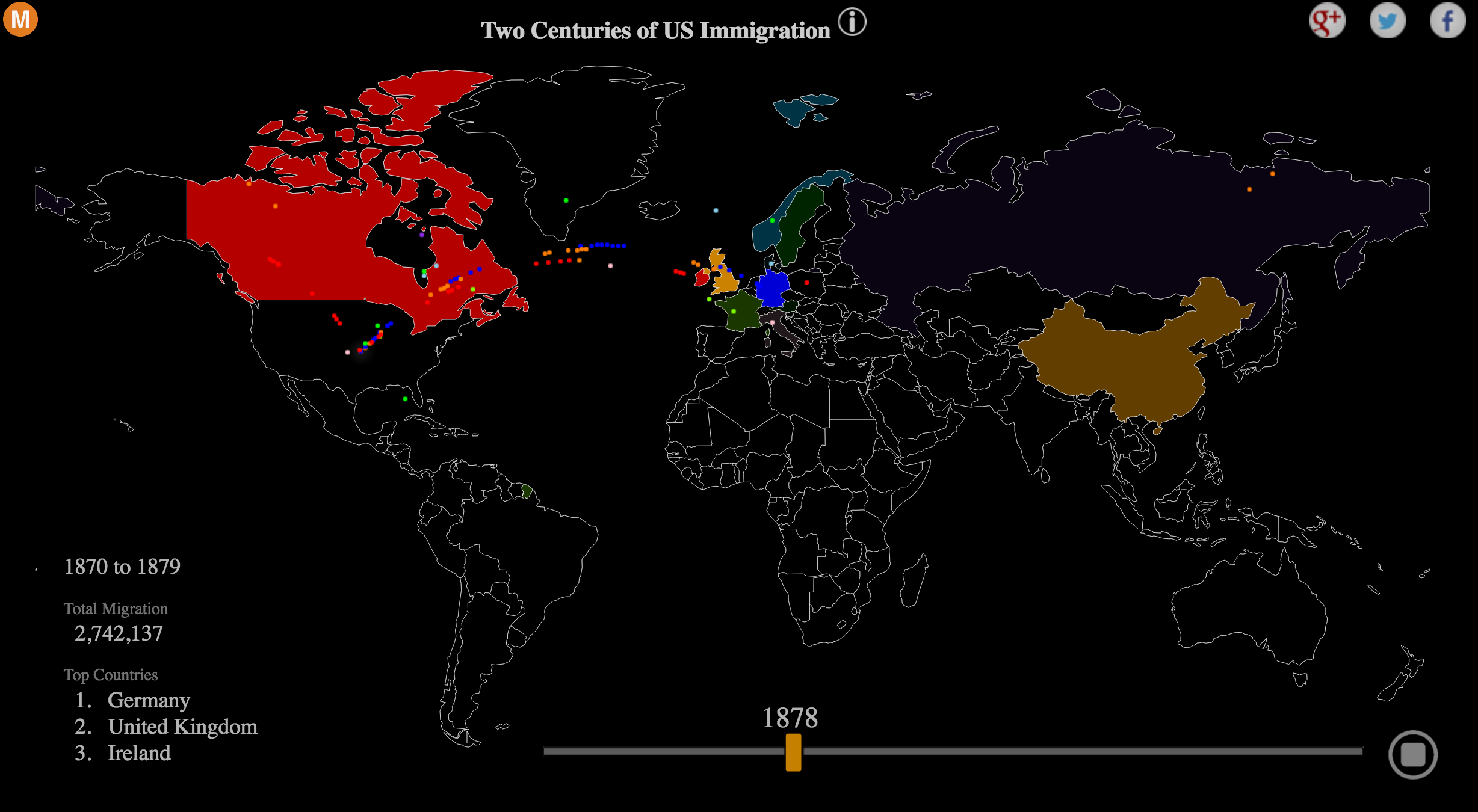 This fantastic visualization from metrocosm shows the various waves of immigration into the United States from the 19th century to the present day.