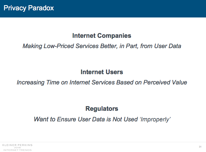 However, there is also a privacy paradox that takes place. Internet companies, Internet users and regulators seem to have different goals and needs, which creates a confusion on the best way to find a balance.