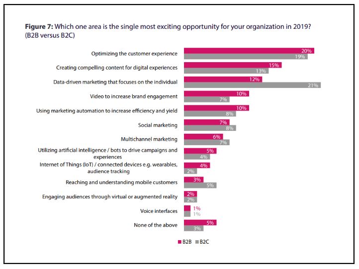 Data-driven marketing is the holy grail for large organizations, with 24% regarding it as the single most exciting opportunity in 2019, even winning out over improved customer experience.