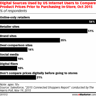 In fact, a study by emarketer found that four out of five internet users use digital channels to compare prices when shopping online before purchasing.
