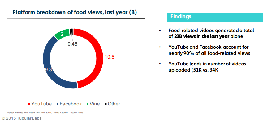 YouTube has significantly contributed to the trend of video consumption and more specifically, the food industry was among its most popular categories. According to a report by Tubular Labs and Google, food videos generated almost 11 billion views on YouTube last year, as it was the biggest platform for food content, while Facebook was second.