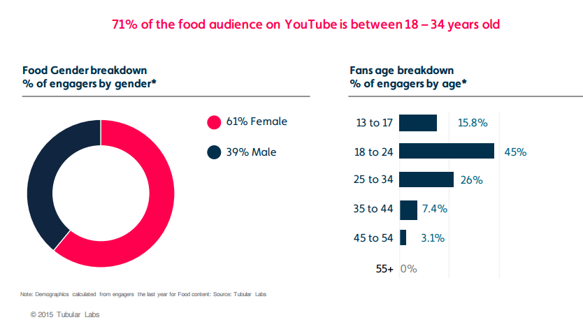 What’s more, a research by Millward Brown Digital, Firefly, and Google reports that people aged between 18 and 34 watch 30% more food content on YouTube compared to other demographics, which proves why many publishers seek for the attention of this loyal and highly engaged audience.