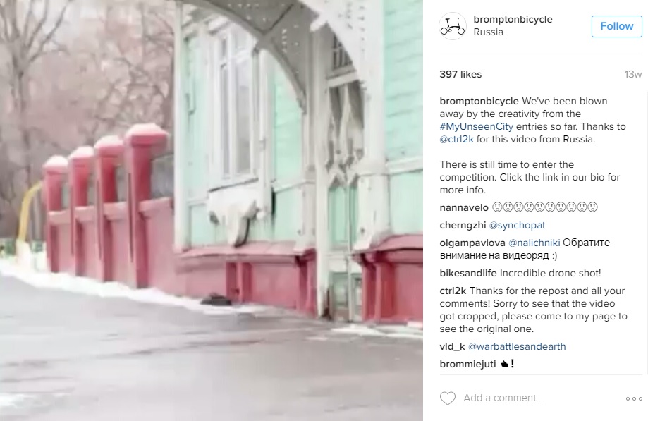 Entrants were invited to create and publish to Instagram a 15-second short film about “a part of your city we haven’t seen” (no bikes required for the film to be eligible), geo-tagging their city and using the hashtag #MyUnseenCity to enter. The competition ran until 31st March (with the winners yet to be announced) and accumulated 1,130 posts for the #MyUnseenCity hashtag on Instagram, with Brompton Bicycle promoting several of the entries on its official channel.
