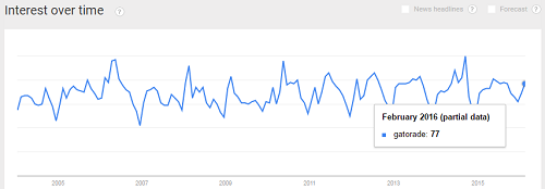 I looked at Google Trends this morning for Marriott and Gatorade, two brands that advertised on Snapchat but not on TV. Marriott, which was part of the Live Story, searches haven’t changed from January, though Gatorade saw a spike.