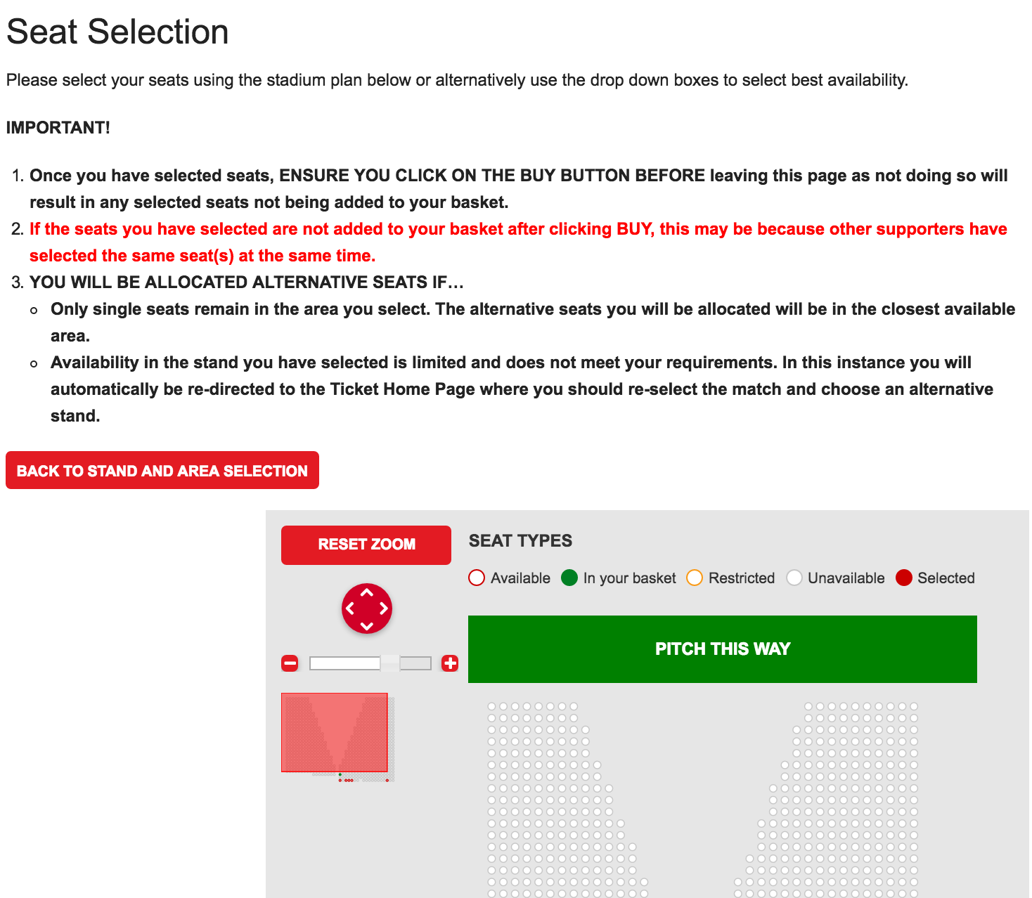 I encountered a similar issue on the West Ham site. Clicking on ‘buy now’ from the page below just sends me back to the same page. It turns out that, after clicking ‘how to buy’ you can find a link to a separate ticket site, but this isn’t obvious at all.