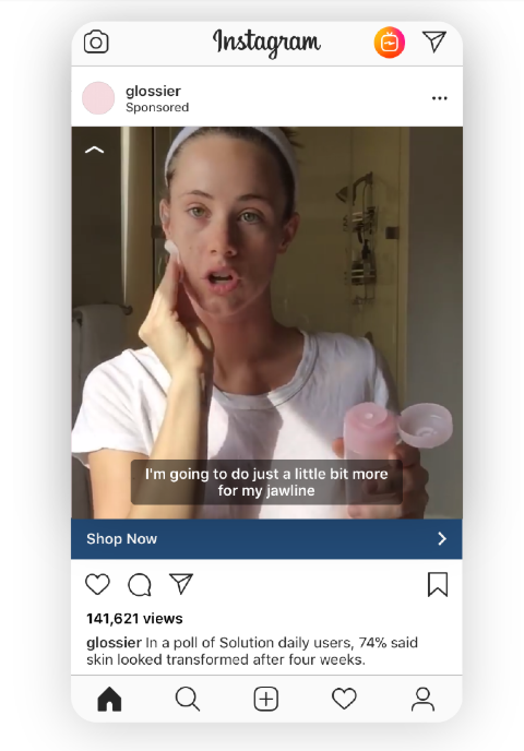 If you’re able to curate user videos, you’re in luck. Shoppers who view video ads are 1.81x more likely to complete a purchase. Beauty brand Glossier showcases this tactic below.