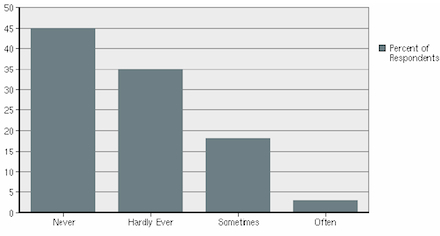 The research also found 21 percent of overall users click on ads “sometimes” or “often,” with 80 percent clicking “never” or “hardly ever,” as shown in the graphic below.